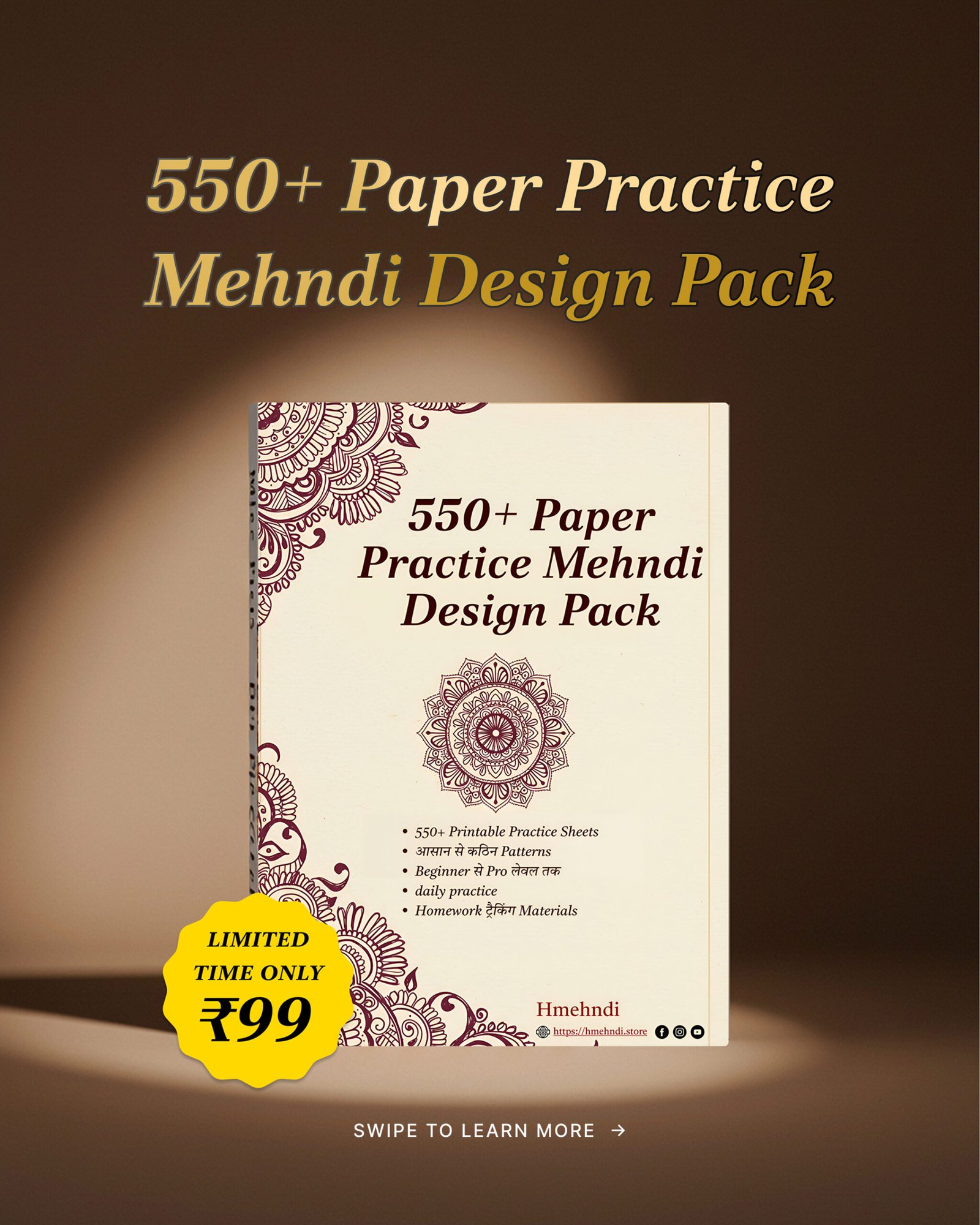 “Jaise hi aapka payment complete hoga, aapko ek Thank-you page par redirect kiya jayega jahan se aap Turant apna “550+ Paper Practice Mehndi Design Pack” download kar sakte ho. Aapko ek email bhi milegi jisme direct download link hoga. Enjoy kijiye instant aur hassle-free access! Agar aapko koi problem hoti hai toh bas humein WhatsApp karein aur turant solution paayein. Aapki satisfaction hamari top priority hai. Toh Hamare saath shop kijiye full confidence ke saath!